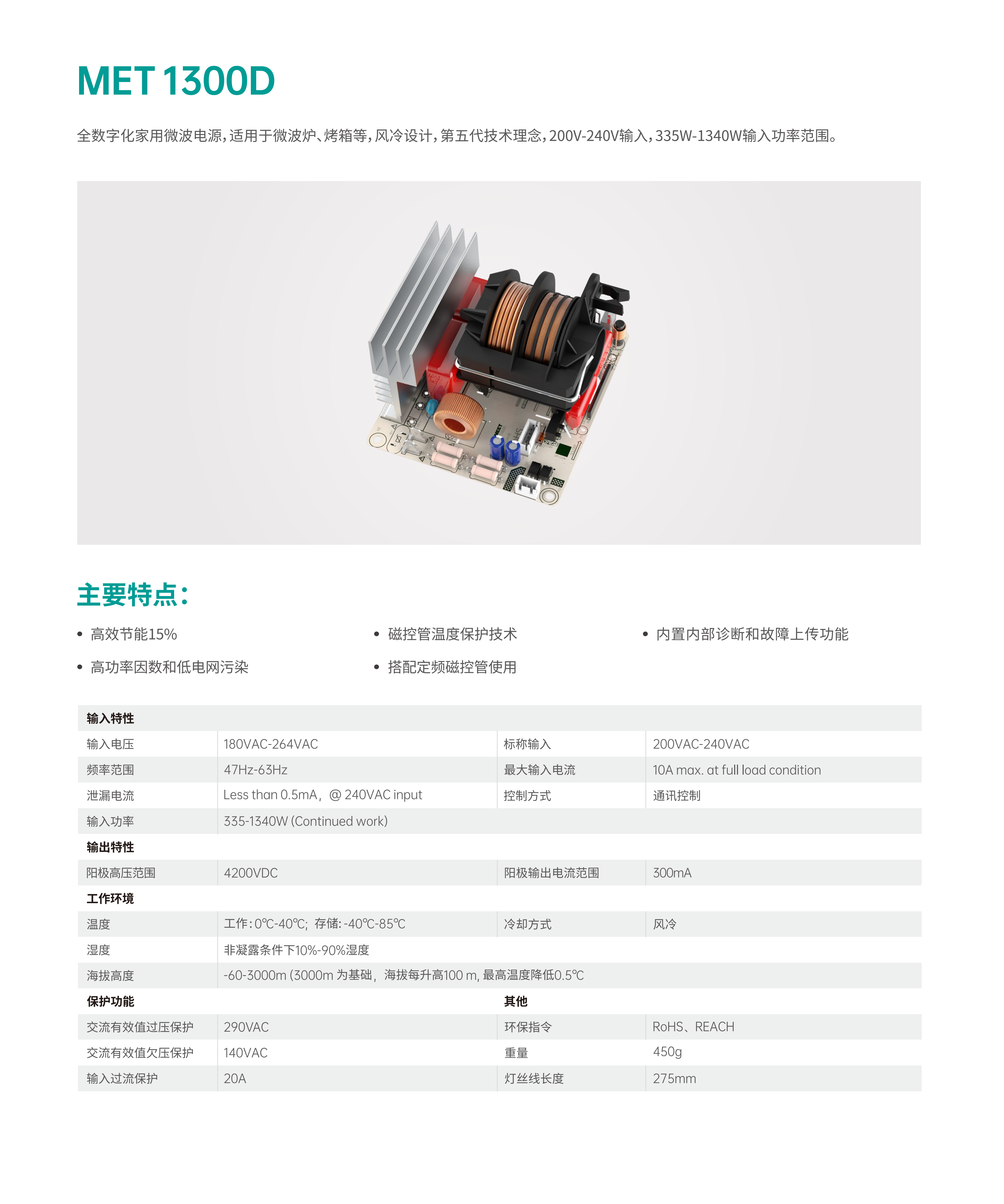 在未來廚房電器研發(fā)中,麥米電氣始終致力于家用/商用微波加熱爐的解決方案。通過智能硬件將微波電源在不同場景下的工作狀況進行優(yōu)化,實現用戶體驗更友好的交互。